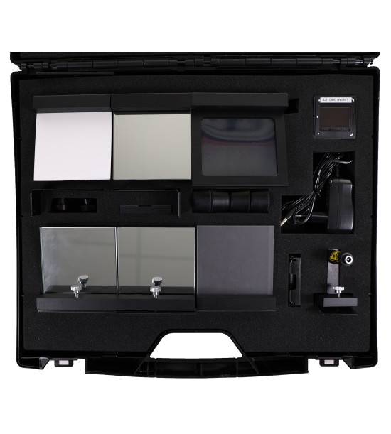 A Laser Optical Set is a collection of optical and mechanical elements that have been designed to make the observation and easy understanding of physical principles of wave optics possible. By such means the usual way of theoretical teaching may be raised to a higher level. It helps in the demonstration of wave optics principles such as interference, diffraction, linear polarization of light, or hologram reconstruction. All components contain a magnetic mounting base. The set is packed in a plastic carry case designated for safe transport and convenient storage.