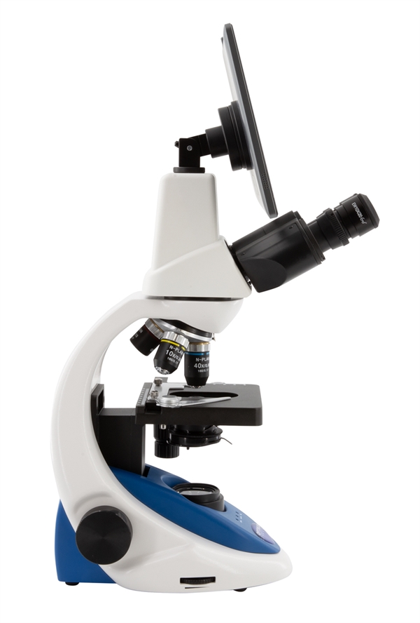 Mikroskop trinokulært med fuld elektronisk motoriseret fokus, 1000x forstørrelse m/plan objektiver. LED lys.
