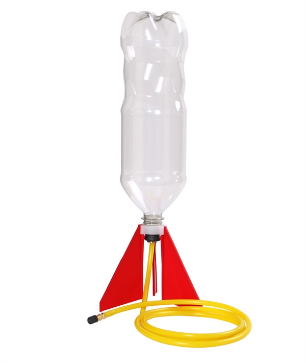 Består af en affyringsrampe med kobling til plastflaske og slange med ventil til cykelpumpe.
