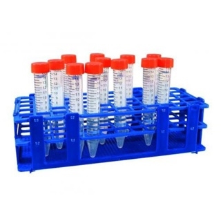 Reagensglasstativ i PP. Kan stables. Leveres i 3 dele, men kan nemt og hurtigt samles. Med alphanumerisk gitter på toppen.